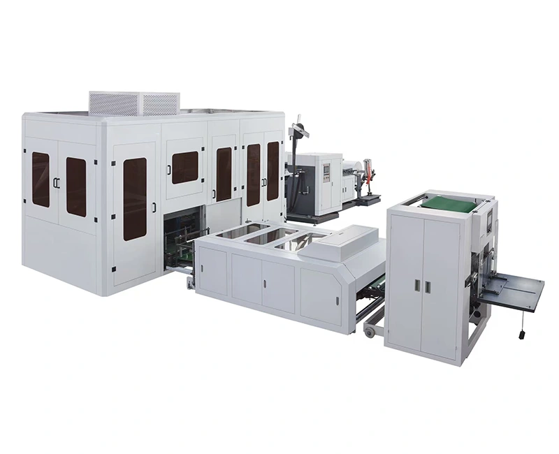 1. Ultralyds ikke-vævet stof D-cut og box-type posefremstillingsmaskine er den nyeste fuldautomatiske ikke-vævede posefremstillingsmaskine.